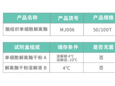 脑组织单细胞解离酶MJ006专为人、小鼠、大鼠等动物脑组织单细胞悬液制备设计,通过多元复合酶的温和酶解作用将脑组织高效解离成为单个细胞悬液,在高得率的同时能够获得高活性的单细胞,后续适用于单细胞测序、流式细胞分析、流式细胞分选、原代细胞培养、类器官3D培养等实验。