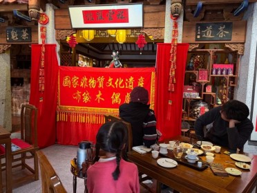 午后渐深,茶客换了一波又一波。穿制服的白领趴在桌上写计划,笔尖划过纸页的沙沙声与蝉鸣和鸣;西装革履的白领脱了外套,把公文包搁在竹椅旁,捧着茶碗长舒一口气;还有背着相机的游客,举着镜头对准墙角那盆养了十年的兰草,生怕惊扰了这份慵懒。