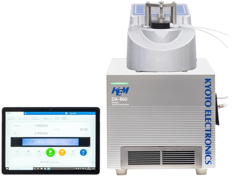 测试原理: 密度计DA-850: U型振动管密度法,折光率仪RA-600: 钠光谱D线(589.3nm)测定方式。